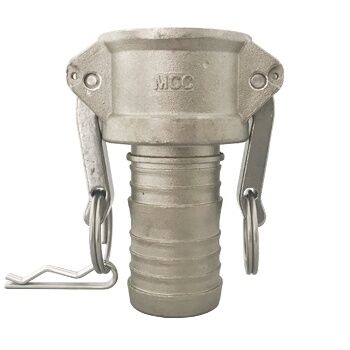 Złącze CAMLOCK C 1/2″ do 8″ z końcówką do węża, wyprodukowane z aluminium wg. normy MIL A-A-59326A. Złącze posiada końcówkę do węża przystosowaną do zaciskania na opaski i obejmy. W standardzie posiada uszczelnienie z gumy NBR.